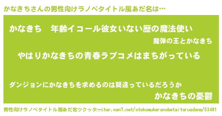 | 女子向けラノベタイトル風あだ名 | 『かなきち伯爵の花嫁』 |
