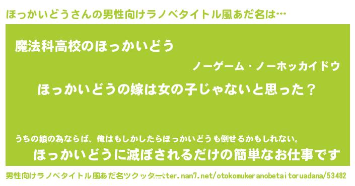 ほっかいどうさんの男性向けラノベタイトル風あだ名をツクッター!