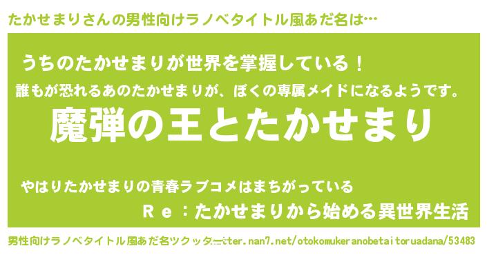 | 意味不明あだ名 | 『住所不定無職たかせまり(50歳)』 |