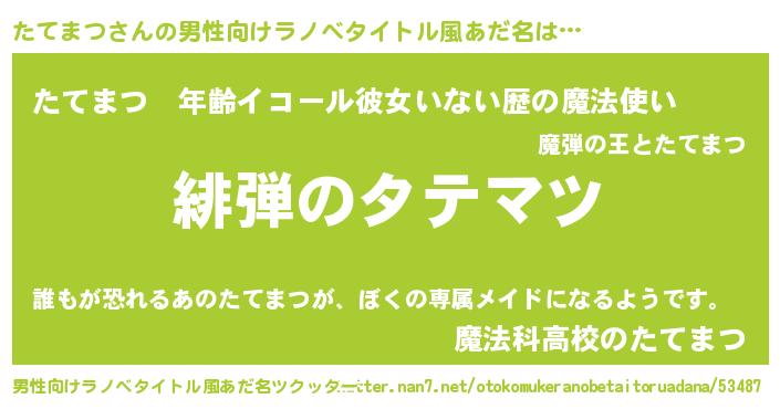 | ヒーロー風カッコイイあだ名 | 『超時空戦士タテマツ』『仮面タテダー』 |