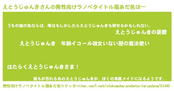 | 女子向けラノベタイトル風あだ名 | 『えとうじゅんきの玉の輿計画!』 |