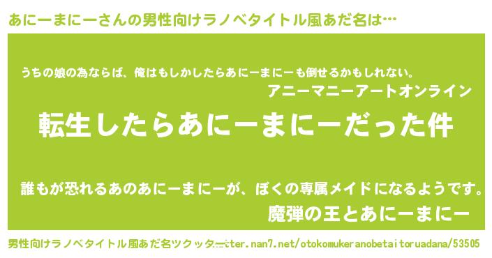 | 胡散臭い通販商品みたいなあだ名 | 『世界が平和になる高級そうな壺…その名も「あにーまにー」』 |