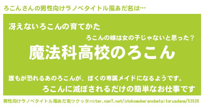 | 女子向けラノベタイトル風あだ名 | 『ろこんなんてお断りですっ。』 |
