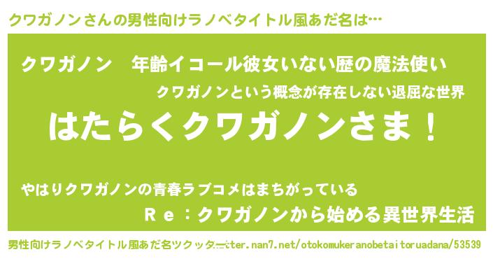 | ヘコむあだ名 | 『クワガノン(苦笑)』『酢こんぶ』 |