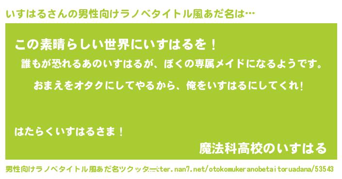 | 女子向けラノベタイトル風あだ名 | 『いすはる夫妻のなれそめ』 |