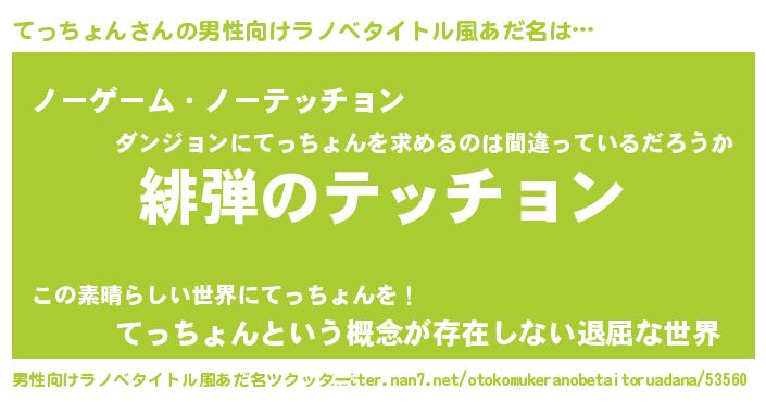 | 胡散臭い通販商品みたいなあだ名 | 『100人中100人が認めたマグネット磁石…その名も「てっちょん」』 |