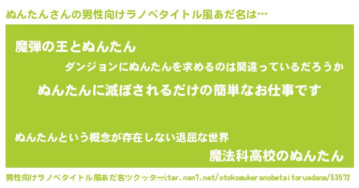 | ヒーロー風カッコイイあだ名 | 『仮面ヌンダー』『超時空戦士ヌンタン』 |