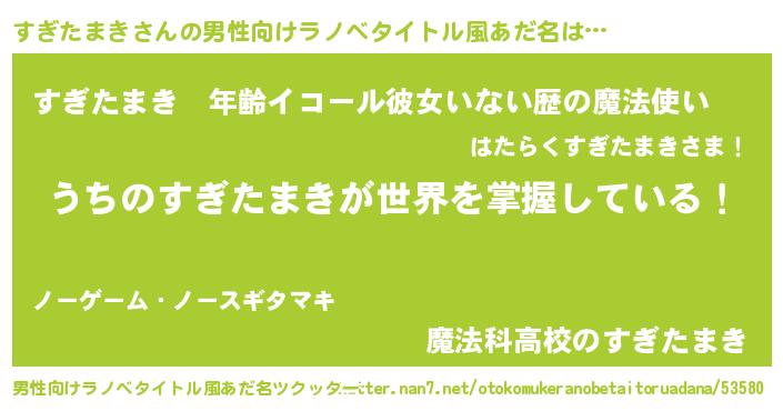 | 胡散臭い通販商品みたいなあだ名 | 『芸能人もオススメする高麗人参…その名も「すぎたまき」』 |