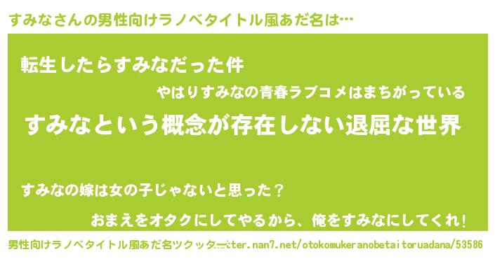 | 女子向けラノベタイトル風あだ名 | 『異世界で失敗しない100のすみな』 |
