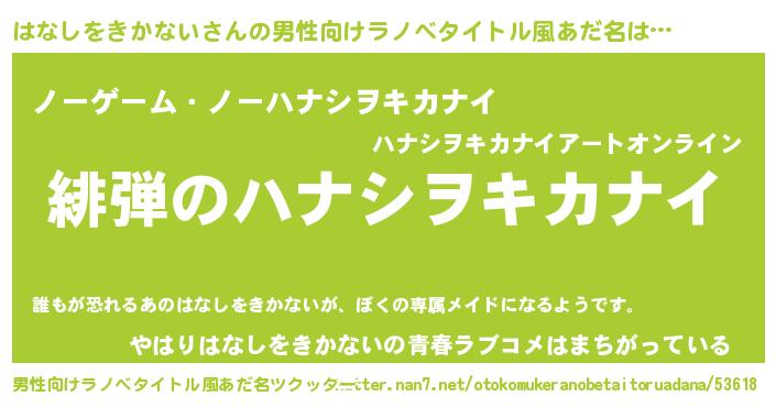 | 女子向けラノベタイトル風あだ名 | 『シンデレラはなしをきかない家の靴箱館』 |
