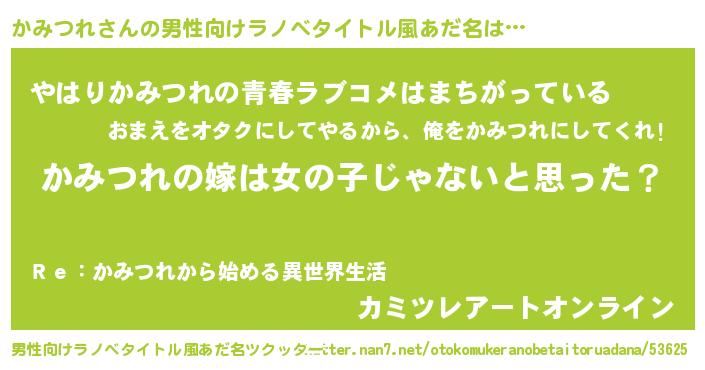 | 胡散臭い通販商品みたいなあだ名 | 『伝統あるサプリメント…その名も「かみつれ」』 |