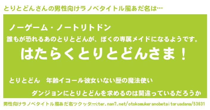 | ヘコむあだ名 | 『とりお』『とりとどん(笑)』 |