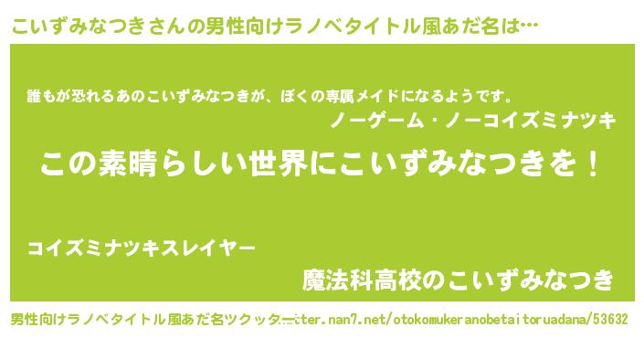 | 意味不明あだ名 | 『住所不定無職こいずみなつき(3歳)』 |