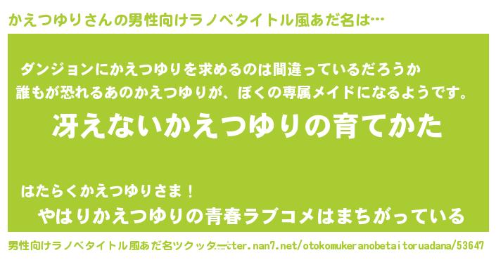 | ヒーロー風カッコイイあだ名 | 『銀牙騎士カエ』『ネオカエツユリ』 |