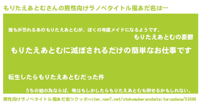| ヘコむあだ名 | 『もりたえあとむ(爆)』『酢こんぶ』 |