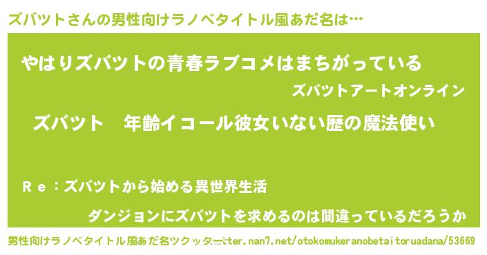 | 女子向けラノベタイトル風あだ名 | 『ズバツトの玉の輿計画!』 |