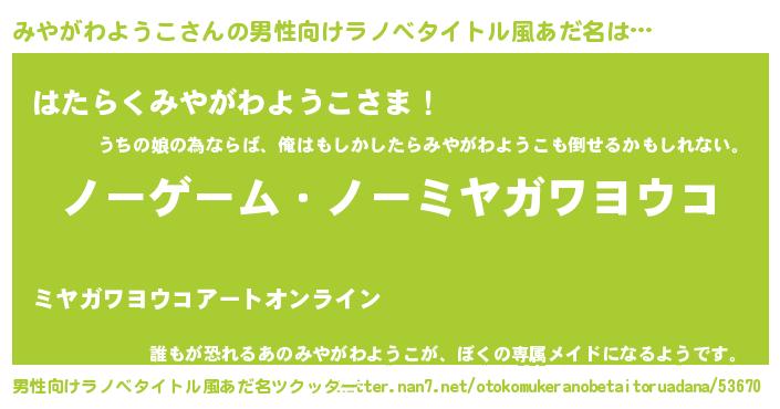 | ヘコむあだ名 | 『みやがわようこ(笑)』『牛乳』 |