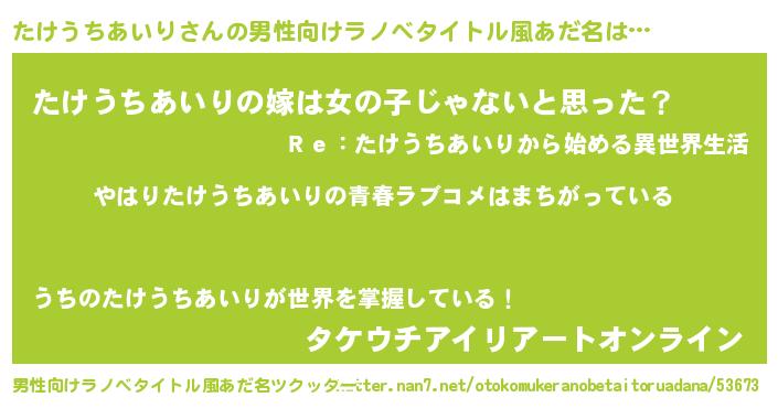 | 女子向けラノベタイトル風あだ名 | 『たけうちあいりの雑貨屋さん』 |