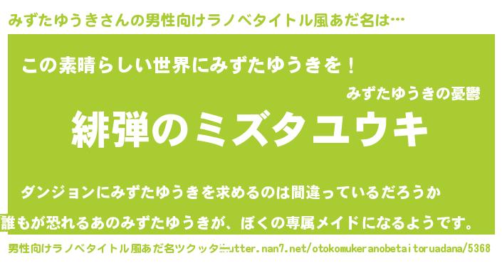 | 意味不明あだ名 | 『住所不定無職みずたゆうき(39歳)』 |