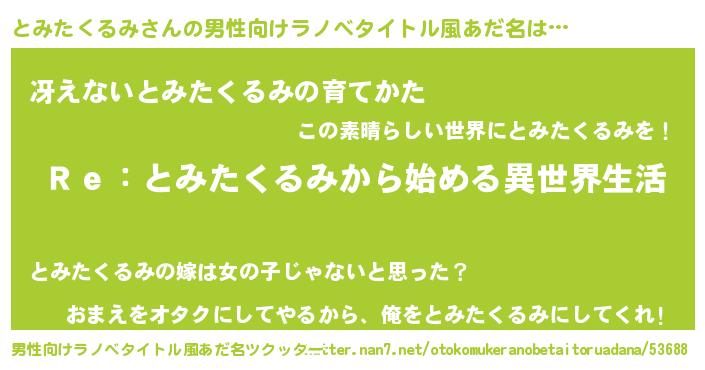 | 意味不明あだ名 | 『自称とみたくるみ』 |