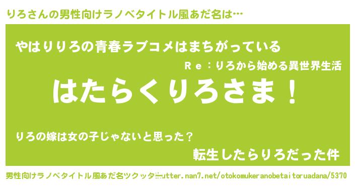 | ヘコむあだ名 | 『豆乳』『りろを』『りろ(震え声)』 |