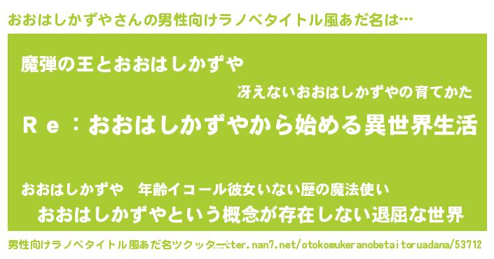 | 女子向けラノベタイトル風あだ名 | 『おおはしかずやストレイドッグス』 |