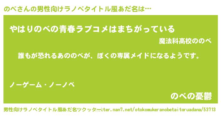 のべさんの男性向けラノベタイトル風あだ名をツクッター!