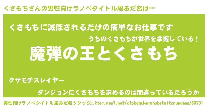 | 意味不明あだ名 | 『住所不定無職くさもち(43歳)』 |