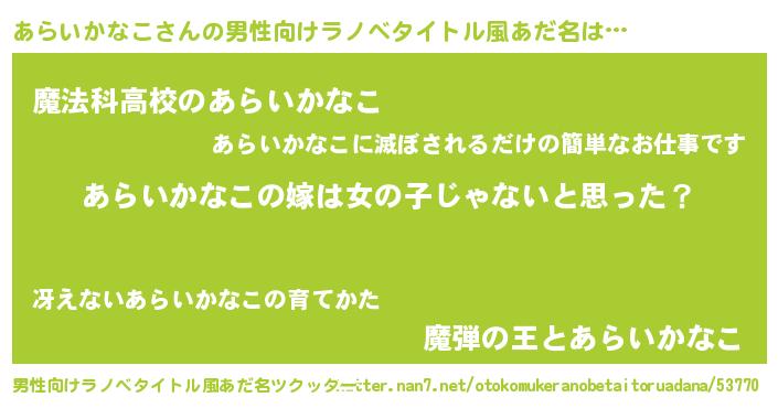 | 意味不明あだ名 | 『とにかく怪しいあらいかなこ』 |