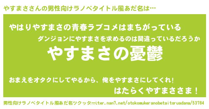 | 胡散臭い通販商品みたいなあだ名 | 『必ず成功する水晶球…その名も「やすまさ」』 |