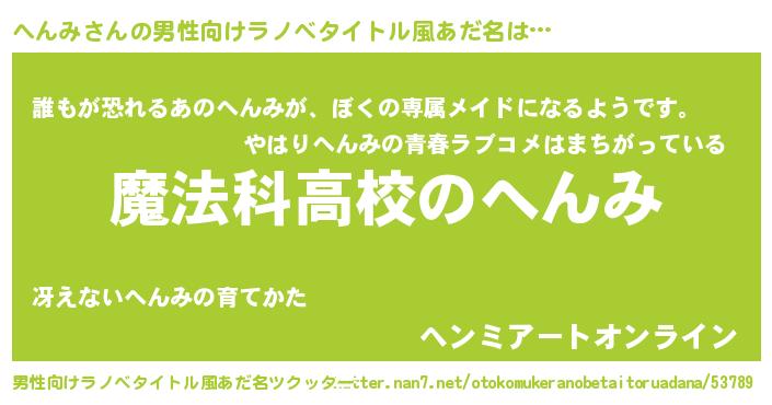 | 女子向けラノベタイトル風あだ名 | 『へんみアンティーク』 |