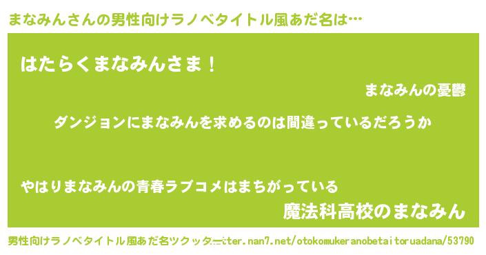 | ポケモン風あだ名 | 『ヒマナミン』『マナゴンZ』 |