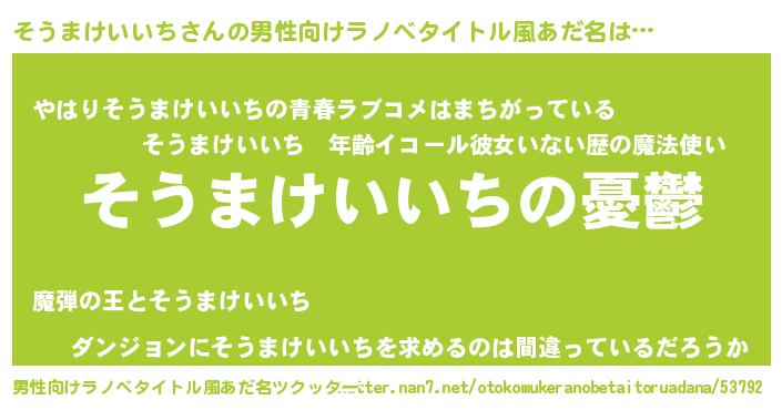 そうまけいいちさんの男性向けラノベタイトル風あだ名をツクッター!