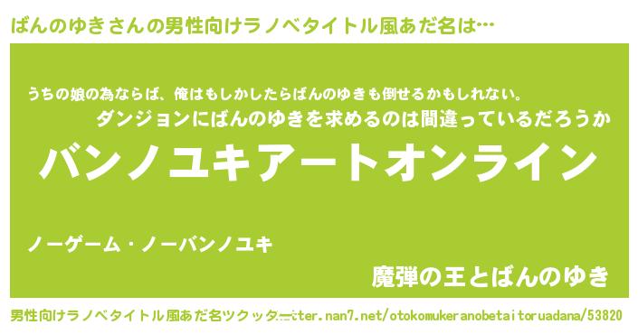 | ファンタジー風あだ名 | 『バンフェル』『エターナルバンノユキー』 |