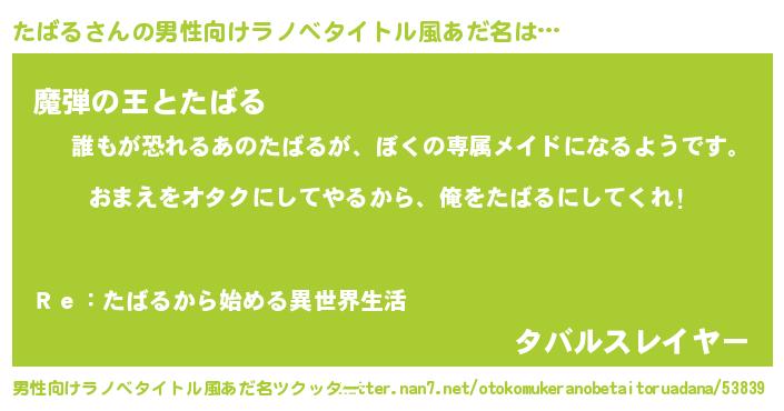 | 女子向けラノベタイトル風あだ名 | 『たばる夫妻のなれそめ』『闇のたばる』 |