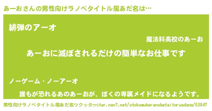 | 女子向けラノベタイトル風あだ名 | 『横柄あーおと宰相陛下』 |