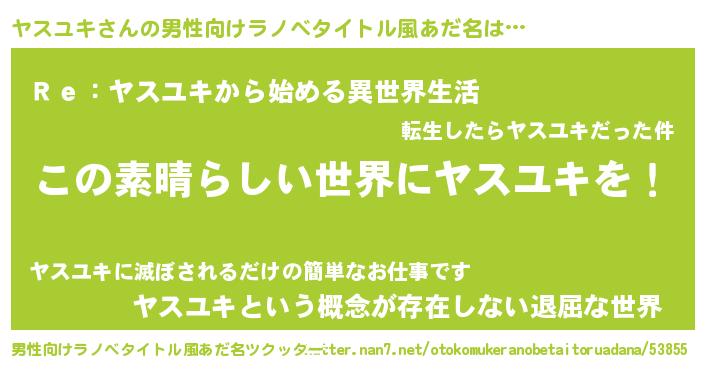 | 意味不明あだ名 | 『住所不定無職ヤスユキ(7歳)』 |