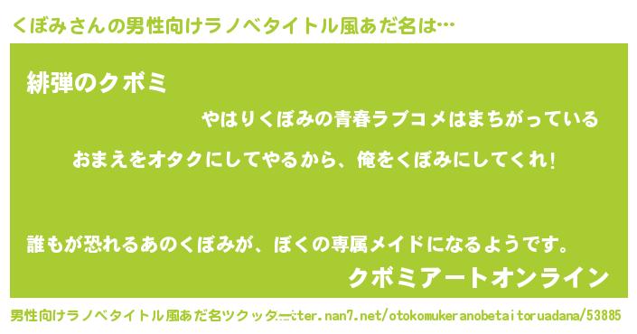 | 女子向けラノベタイトル風あだ名 | 『くぼみ夫妻のなれそめ』 |