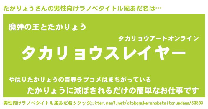 | ヒーロー風カッコイイあだ名 | 『仮面タカダー』『スーパータカリョウ』 |