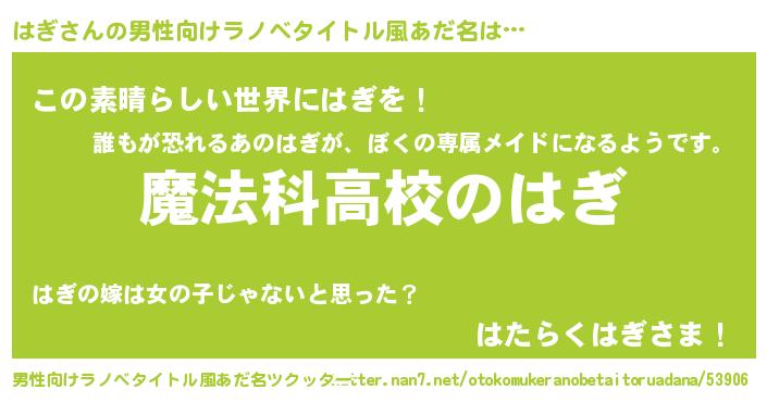 | 女子向けラノベタイトル風あだ名 | 『はぎアンティーク』『はぎ様がみてる』 |