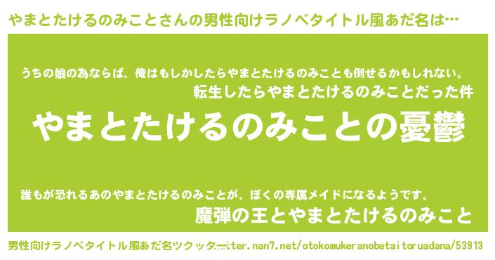 | 胡散臭い通販商品みたいなあだ名 | 『必ず成功する水晶球…その名も「やまとたけるのみこと」』 |