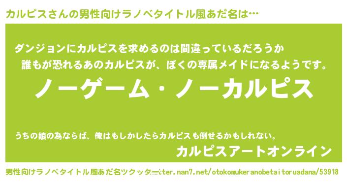 | 女子向けラノベタイトル風あだ名 | 『カルピス恋絵巻』『カルピスの婚約者』 |
