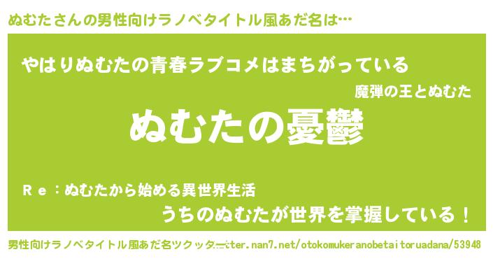 | ヒーロー風カッコイイあだ名 | 『スーパーヌムタ』『ウルトラぬむたマン』 |