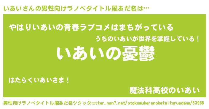 | 女子向けラノベタイトル風あだ名 | 『(仮)いあいのやんごとなき事情』 |