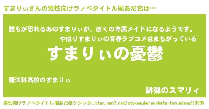 | 女子向けラノベタイトル風あだ名 | 『(仮)すまりぃのやんごとなき事情』 |