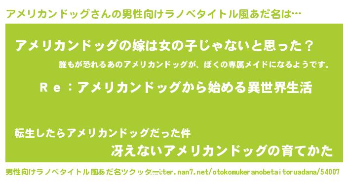 | ヘコむあだ名 | 『アメっ子』『アメリカンドッグ(小並感)』 |