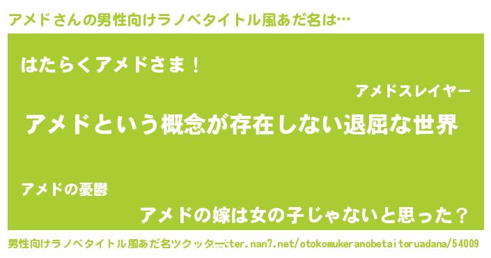 | 胡散臭い通販商品みたいなあだ名 | 『絶対に幸福をもたらす水素水…その名も「アメド」』 |