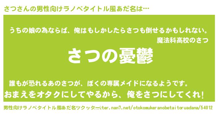 | 胡散臭い通販商品みたいなあだ名 | 『必ず成功する水晶球…その名も「さつ」』 |