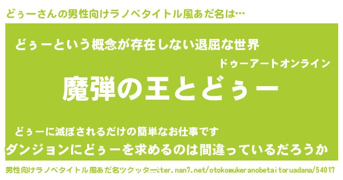 | 意味不明あだ名 | 『住所不定無職どぅー(62歳)』 |