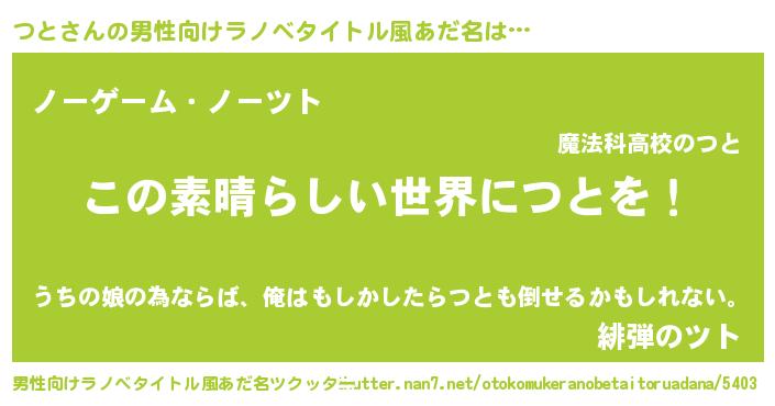 | 女子向けラノベタイトル風あだ名 | 『悪役つとに転生したようですが、知った事ではありません』 |